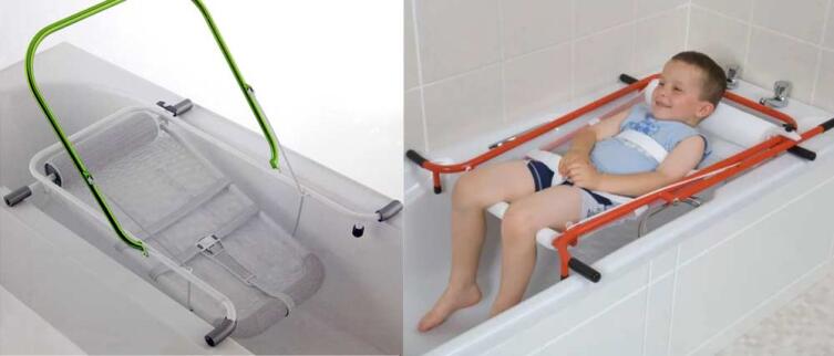 Представляют собой лежанку по типу шезлонга, но из сетчатой ткани, которая не боится воды. Приспособление дополнительно может комплектоваться подголовником с боковыми поддержками, абдуктором и ремнями, что позволяет зафиксировать ребенка для безопасного купания.