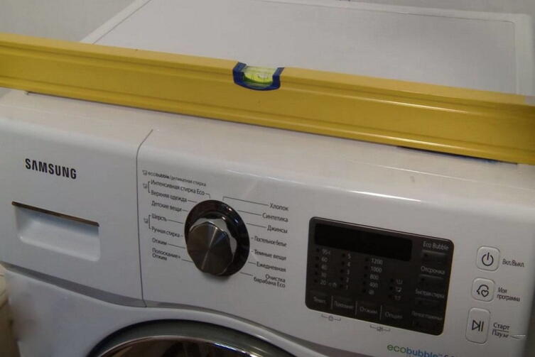 Для проверки горизонтальности используйте строительный уровень, приложив его к верхней панели устройства. Отклонение не должно превышать 2 градусов. При большем отклонении нарушается центр тяжести барабана, что приведет к неправильной работе машины, увеличению износа и поломкам.