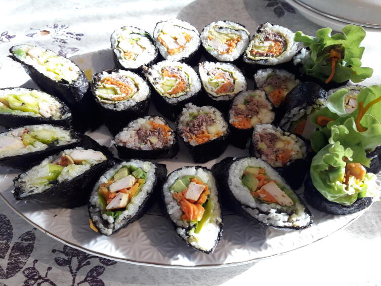 Корейцы обожают брать кимпабы с собой на пикники, дают деткам в школу в качестве перекуса, для молодежи кимпаб — отличный здоровый фастфуд. Жаль, что в нашей стране пока такой вид закуски не слишком распространен, в отличие от японских суши и роллов, например.