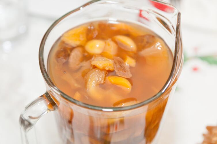 В это время в большой кастрюле готовим сироп из расчета 2,5 литра воды и 300 граммов сахара на банку. Кипящим сиропом заливаем банки, накрываем крышками, даем постоять минут пятнадцать. Затем сироп снова сливаем в кастрюлю, доводим до кипения, разливаем по банкам и закатываем. Зимой можно друзей и соседей удивлять: от ананасового кабачковый компот не отличишь!
