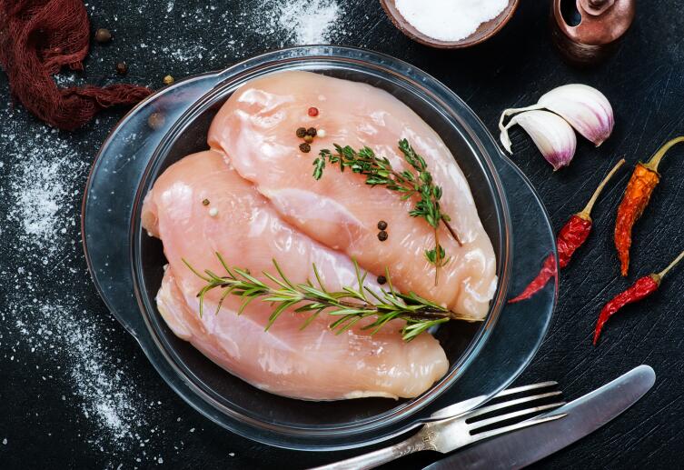 - отварная грудка, мелко порезанная, политая майонезом с добавлением молотого перца;