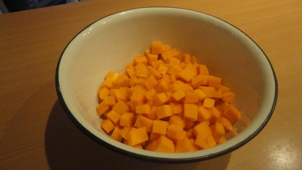 Итак. У нас уже готовы сытное второе блюдо, десерт, часть тыквы мы зарезервировали на предстоящие выходные, а от того огромного плода, который мы водрузили на разделочный стол в самом начале, ещё осталось… Ну, где-то около килограмма. Не меньше.