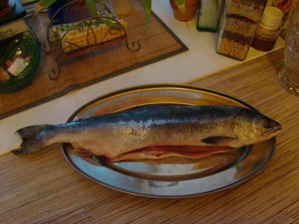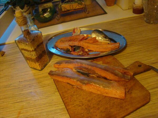 Сделал к дню рождения жены рыбку по рецепту. Правда не горбушу, а форель. Все гости сразу стали спрашивать рецепт. Ну у меня дома то ссылки не запрещены, поэтому всем раздал.