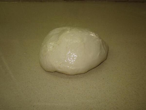 Как только становится трудно вымешивать тесто в миске, перекладываем его на стол. Если возникает желание добавить муки… берем себя в руки и категорически отказываемся от этой затеи. Немного любви, терпения, труда и желания… Минут 7−10 времени, ушедшего на размазывание, растягивание, складывание, вытягивание, сворачивание и обминание теста, неизбежно приведут нас к удивительно благодушному настроению, похожему почти на счастье. Во-первых, пониманию того, что больше муки было не нужно и даже вредно. Во-вторых, потому, что оно (тесто) станет эластичным, нелипким, упругим, нежным и живым, а не забитым мукой бездушным комочком.