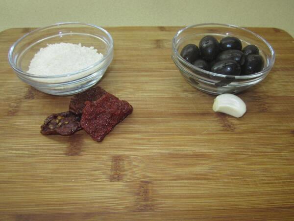 В это время и определимся с выбранной на сегодня начинкой. У меня будет одна — из смеси тертого пармезана, мелко-мелко резанных вяленых помидорок и свежемолотого черного перца. А вторая — из мелко порезанных маслин смешанных с чесноком. Это вкусно! Факт! Я проверяла.