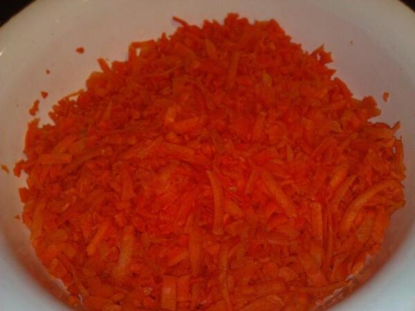 Приготовление. Морковку натереть на специальной терке для корейских салатов. У меня терка трет только крупные особи, поэтому я худую морковь прогнала электрической теркой на крупную насадку, ничего страшного — не на продажу. Помять натертую морковку руками можно сразу с солью и сахаром, чтобы дала сок. Выдавить туда чеснок, добавить все специи и тщательно перемешать.
