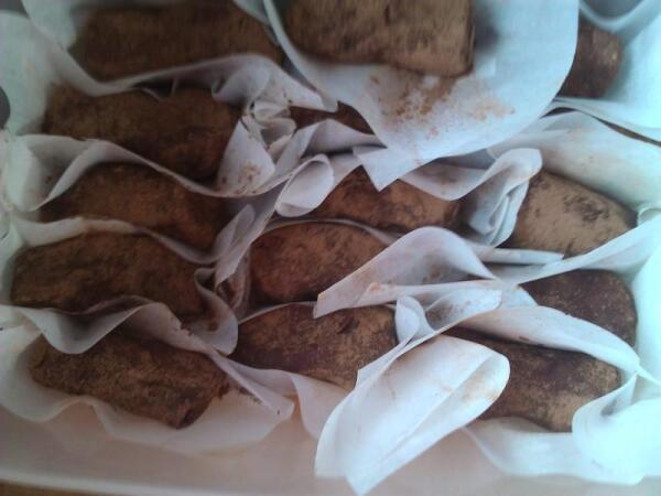 Обваляли, сложили в бумагу и в емкость положили, и так со всеми. Из указанного количества продуктов получается 12−15 пирожных, смотря по размеру.