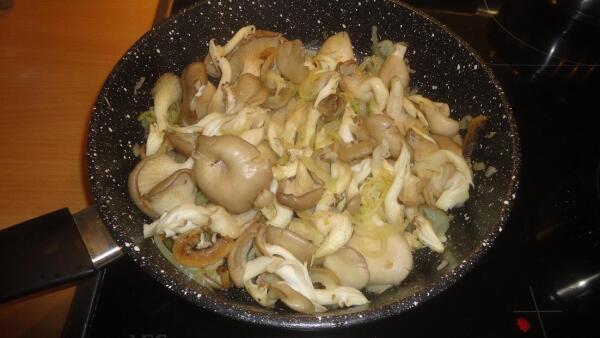 А сам занялся грибами. Март на дворе. Не самый богатый на грибы месяц. Но в магазинах нынче та же вешенка — круглый год. Вот я и купил стандартную, 400-граммовую, упаковку. Грибы разобрал (отделил поштучно от сросшейся плодоножки), помыл и отбросил на дуршлаг.