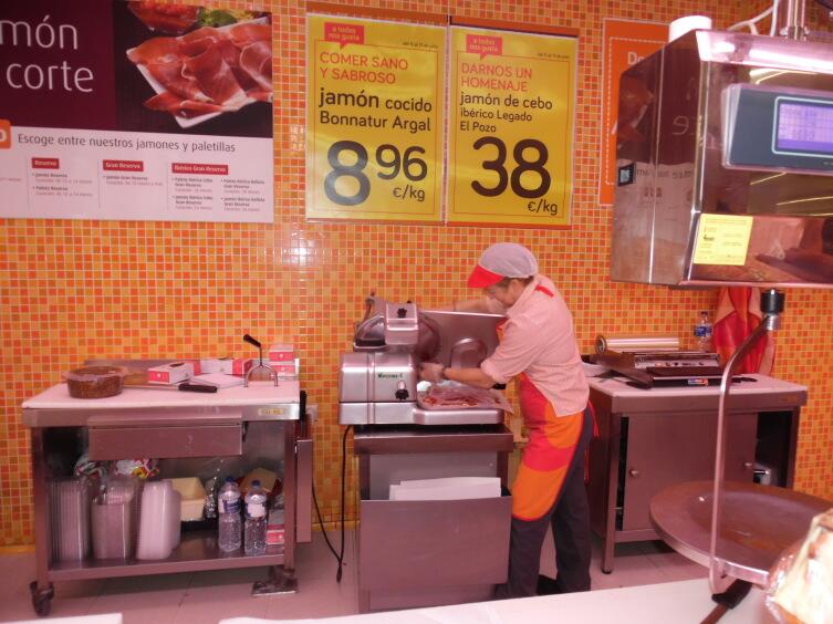 И, кстати, заказывают (в Италии, не думаю, что в Испании по-другому) в лавках или в супермаркетах на нарезку - не килограммами, а сто-двести граммов. И продавец каждый ломтик перекладывает вощеной бумагой, чтобы не склеивались. Так что и сто граммов ветчинки или колбаски выходят большим пакетом.