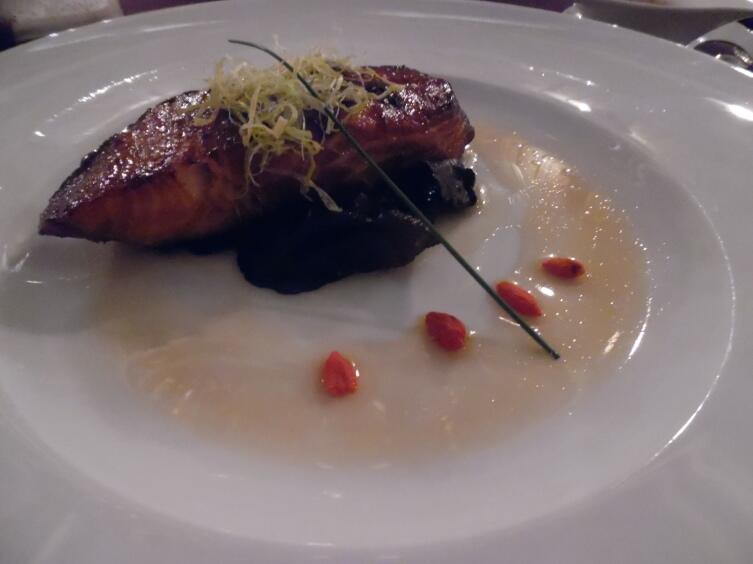 Празднично подать можно с каким-либо овощным кремом и грибами шитаке, а еще лучше — с жареными лисичками. Можно подать шпинат, а можно ограничиться самым обычным рисом. Не забыть капнуть рядышком своего «необыкновенного» соуса — любого. Подойдут сюда и азиатские варианты (например, с кунжутной пастой), и вполне обычные, из того, что под рукой — главное, чтобы соус только чуть-чуть оттенял вкус рыбы. Поскольку рыбное блюдо не рядовое, то все сопутствующее ему может быть вполне лаконичным.