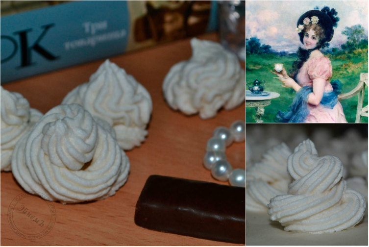 Если у вас нет кондитерского мешка, то массу на пергамент можно выкладывать обычной ложкой, загибая вверх хвостики зефирных шапочек.