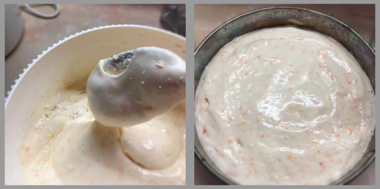 Далее — неторопливое перемешивание сухих ингредиентов, и залитая тестом форма направляется в разогретую до 170 градусов духовку. Через 30 минут морковный бисквит готов!