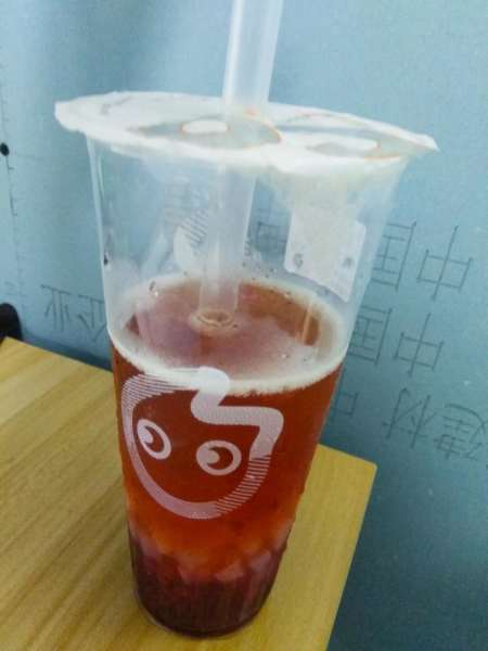 Стоимость такого напитка — около 150 рублей на наши деньги. Он леденяще холодный. Сверху на нем специальная пленка, которая пробивается толстой острой соломкой — так упаковывают чаи для нормальной транспортировки и сохранения температуры.
