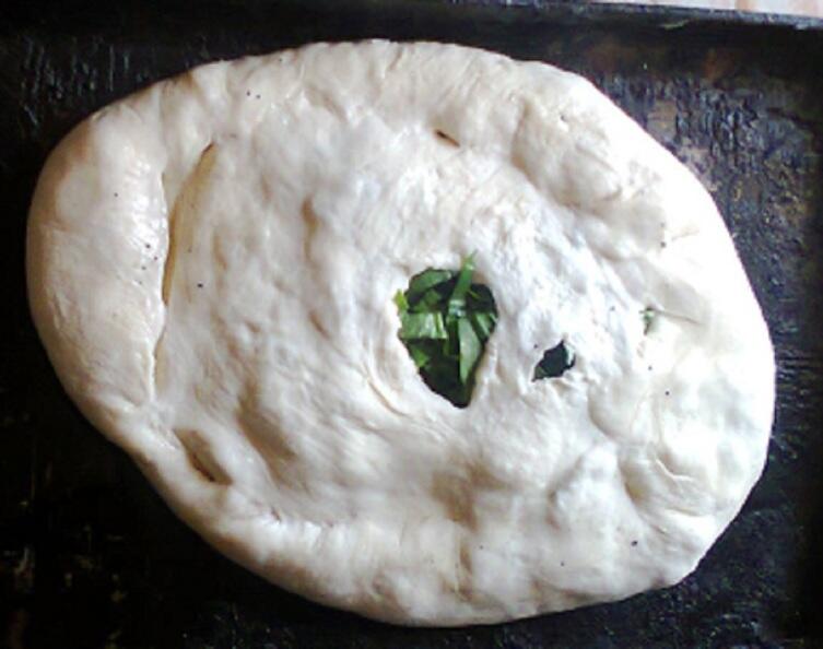Из теста надо раскатать небольшую лепешку, немного толще, чем на обычные пироги. На середину насыпать сахар по вкусу. Сверху щавель. Тщательно прищипнуть края пирожка и положить его на лист швом вниз. Как то так