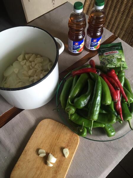 Когда все составляющие готовы, а банки простерилизованы, можно приступать, уговорив любопытствующих домочадцев и домашних животных покинуть кухню. Последнее желательно потому, что дети и внуки всегда рвутся помочь, а с перцем желательно работать в перчатках. Да и кошкам-собакам принюхиваться к парам нагретого уксуса ни к чему, чтобы не испортить свой острый нюх.
