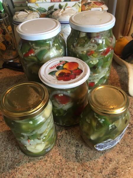 А дальше — кому как нравится. Обычно большую часть банок использую «под винт», маринованный перец ведь через пять-шесть дней уже готов, а устоять и не начать его пробовать невозможно. А одну-две банки делаю обязательно «под закрутку» — неприкосновенный запас для самых дорогих гостей. Стерилизую их конечно минут 15−20.