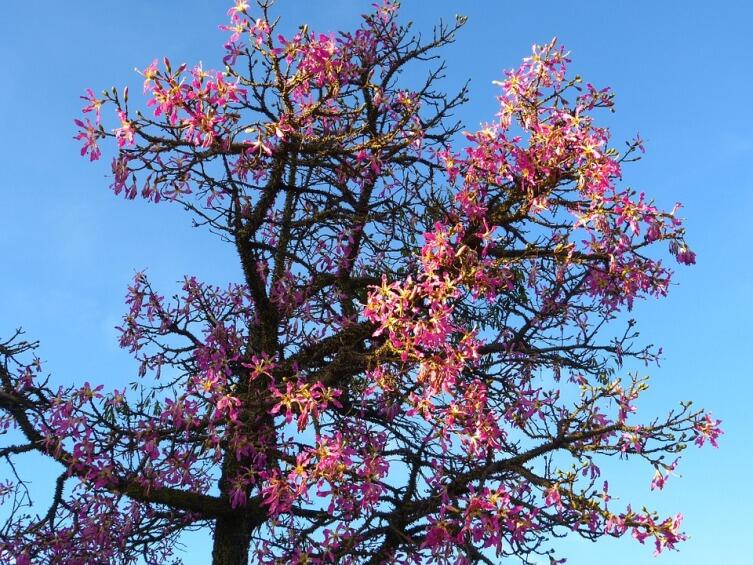 Эффектные крупные цветки различной окраски (белые, розовые, оранжевые, красные) никого не оставляют равнодушным. Как и у многих представителей Мальвовых, цветки раскрываются лишь на один день. Во время цветения под цветущими деревьями красуются ковры из ярких лепестков. Цветение у некоторых видов сейбы продолжается два-три месяца! Надо отметить, что несколько видов сейбы цветут невзрачно.