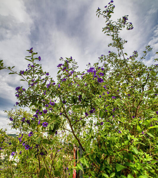 Паслён горечавковидный, или паслён Рантоннети, родом из Южной Америки. Картофельным деревом его называют из-за формы листьев и цветков, которые очень похожи на картофельные.