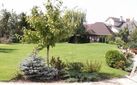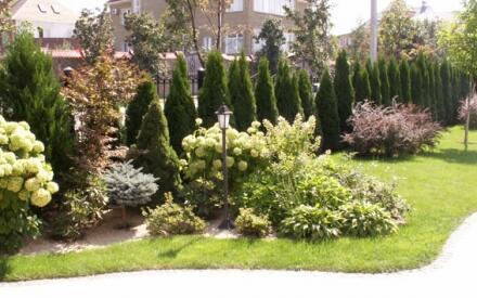 Но главное — это грамотно расположить всё желаемое на участке. Хозпостройки рекомендуется «прятать» за изгородями из туи (или бирючины). Огород тоже далеко не весь год живописен: стоит огородить его декоративным низким заборчиком (плетнём). Оставьте перед домом пятно газона, которое можно окантовать дорожкой, а за дорожкой разбить цветники, высадить среди цветов кустарники разного размера с разным цветом листвы, несколько хвойников шаровидных или колонновидных (в зимнее время будет за что взглядом зацепиться).
