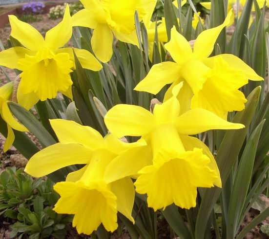 Весной открывают сезон желтые крокусы, нарциссы, тюльпаны. Их высаживают группами в легкую рыхлую почву, в местах, не подверженных застою воды. Глубина посадки должна в три раза превышать размер луковиц или чуть больше. Прекрасно украсят клумбу и примулы, среди которых немало сортов с желтыми цветками. Цветут они довольно долго и обильно, пышные соцветия во время цветения практически скрывают розетку с листьями. Примула неприхотлива, но стоит помнить, что на ярком солнце она больше страдает от недостатка влаги и отцветает быстрее.