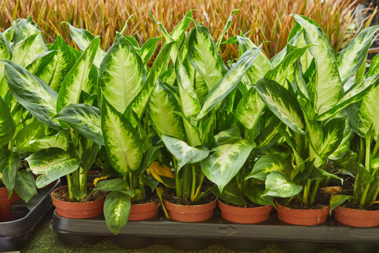 2. Диффенбахия. Растет — дай дорогу, даже на полу, где солнечного света, прямо скажем, кот наплакал. Кстати, о котах: если у вас дома завелась такая зверушка (то же относится к собакам, малым детям, хомячкам, если вы вдруг разрешаете им гулять вокруг диффенбахии), и она имеет привычку тянуть в рот все, что ни попадя — моментально выкидывайте растение. Цветок сей ядовит, а убирать кошачьи (собачьи, дитячьи, хомячачьи) рвотные массы — занятие так себе, да.