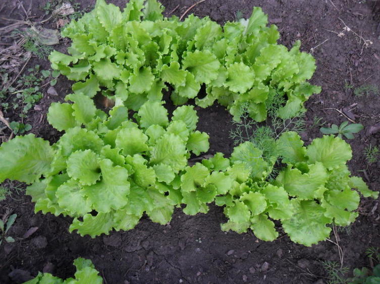 Как только редиска собрана, я уже не перекапываю, а только поправляю грядку и тут же засеваю ее салатом Азарт или Кучерявец Одесский. Примерный срок посева салата выпадает на начало августа. Салат неплохо себя чувствует после такого предшественника, как редиска, быстро всходит, начинает активно расти, и уже в первой половине сентябре его листики вполне пригодны для еды. Ночные похолодания, и даже заморозки, которые в нашей местности начинаются в конце августа или начале сентября, нисколько не мешают салату набирать силу. Сочную, вкусную зелень салата при благоприятной погоде можно использовать до середины октября и даже дольше. Салат как раз и является той культурой, которая дает третий урожай с одной грядки за сезон.