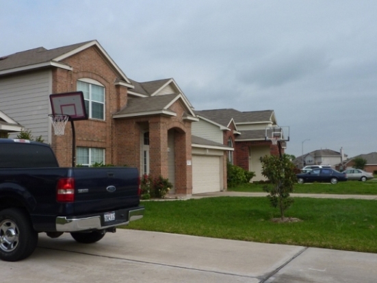 В Хьюстоне, в жилых районах с индивидуальной застройкой, практически у каждого второго дома, особенно, если там подрастают дети, есть баскетбольный столб с корзинкой на переднем дворе, перед домом, и в любую свободную минуту можно покидать мяч, потренироваться.