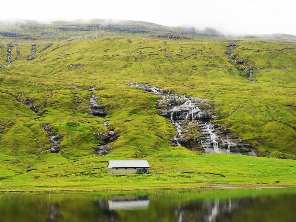 Живописные скалы в основном покрыты изумрудным мхом. Деревья здесь не приживаются, слишком ветрено, а под тонким слоем грунта — базальт. С вершин сбегают многочисленные водопады — дождь здесь почти ежедневно. Фарерцы верят, что их острова — остатки затонувшей Атлантиды…
