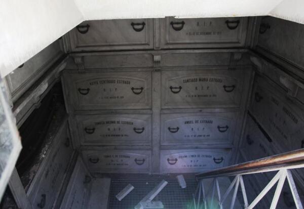 На колоннаде при входе на Реколету выведена надпись: «Да покоятся в мире», и там действительно покоится прах людей. Могил в нашем понимании нет. Роскошные гробы стоят в склепах на виду у всех. Рядом с многими из них лежат библии, распятия, на салфеточках стоят статуэтки, висят фотографии покойных, такая, знаете, почти домашняя обстановка, где приятно посидеть, повспоминать, помолиться.