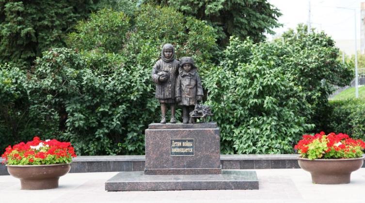 Наконец мы подъехали к площади 30-летия Победы, нашли место для парковки и пошли пешком к обелиску Славы. Вскоре остановились у скульптурной группы «Детям войны посвящается». Девочка с узелком в руках и мальчик, везущий санки с дровами, одетые в зимнюю одежду, олицетворяют всех детей, выживших и погибших в годы Великой Отечественной. Дети медленно направляются в сторону обелиска Победы, и это очень и очень символично. Этот памятник появился на площади к 70-летию Великой Победы.