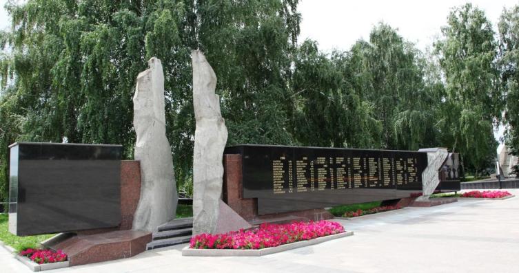 На нижнем ярусе находится бронзовая чаша со звездой с вечным огнем, рядом на гранитной отполированной стене выгравированы имена солдат, погибших во время войны. Естественным продолжением мемориального ансамбля являются памятники воинам-ульяновцам, погибшим в Афгане и Чечне. Вокруг высажены живые цветы.