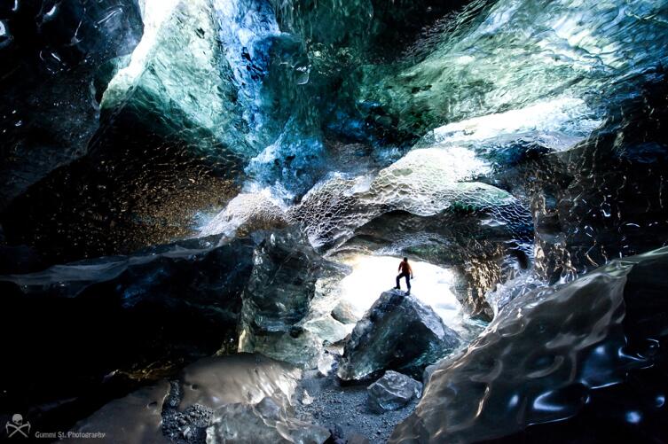 Ледяные пещеры — ещё одна интересная достопримечательность ледника Ватнайекюдль. Они сформировались и продолжают формироваться в его южной части. Этому процессу уже тысячи лет, и благодаря движению водяных потоков здесь были созданы огромные ледяные галереи, длина которых иногда достигает 300 метров. Длительные процессы таяния воды помогли сформировать уникальные ледяные волны, клыки, лабиринты. Ледяной замок поражает своей природной красотой и уникальными цветовыми оттенками.