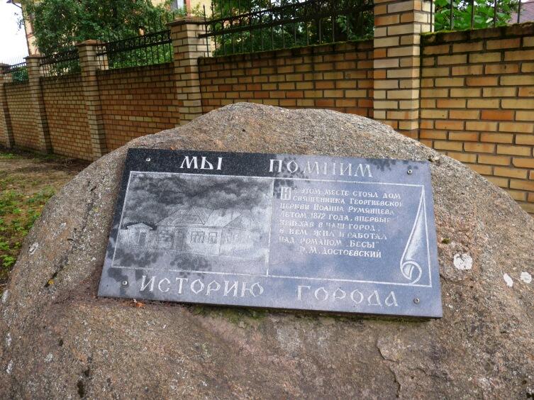 Мы увидели памятный камень с надписью, что жители помнят историю города и своего края, узнали, что река Порусья ещё называется Перерытицей. Постояли и сфотографировались у красивого памятника