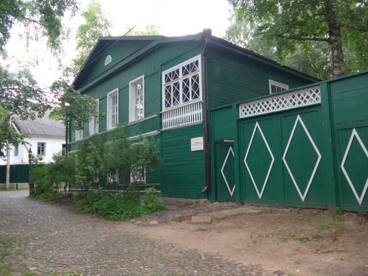 А вот и Дом-музей великого писателя, № 42 по Набережной Достоевского, зеленый, двухэтажный, с зеленым же забором. Калитка открыта, вход со двора.