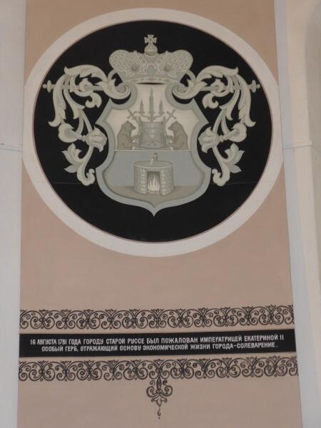 В другой погожий день мы отправились в центр города, в Краеведческий музей и Картинную галерею, которые размещаются в Спасо-Преображенском монастыре, древнейшем храме города. Здесь мы познакомились с историей Старой Руссы, которая сначала называлась просто Руса, вероятно, по названию реки Порусья, на которой возник старинный город. В 1552 году он получил современное название Старая Русса, а 16 февраля 1781 года императрицей Екатериной II городу был пожалован особый герб, отражающий основу экономического развития города — солеварение, и он был объявлен уездным городом.