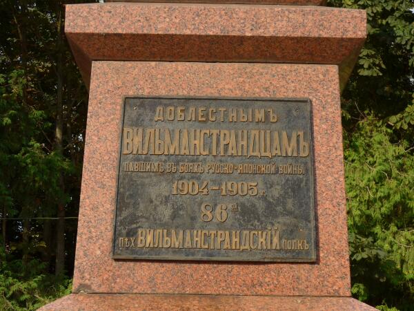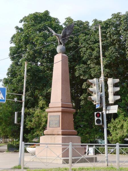 Поскольку передвигались мы по Старой Руссе пешком, то после музеев пошли к памятнику на углу улиц Минеральной и Володарского, который местные жители называют просто «Орёл». На высоком гранитном постаменте сидит бронзовый орёл, раскинув крылья, а полное название начертано внизу: «Доблестнымъ вильманстрандцамъ, павшимъ въ бояхъ русско-японской войны 1904−1905 гг. пех. 86-ой Вильманстрандский полкъ».