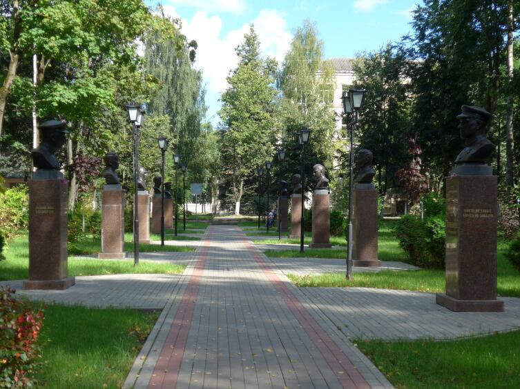А два года назад Старая Русса стала Городом воинской славы. 6 апреля 2015 года указом Президента России В. В. Путина городу было присвоено это почётное звание. И осенью того же года в парке появилась идущая от Вечного огня Аллея героев, на которой установлены на постаментах бюсты Героев Советского Союза, погибших в сражениях за город. Удивительно, что большинство Героев — рядовые, сержанты и партизаны, и всего три офицера.