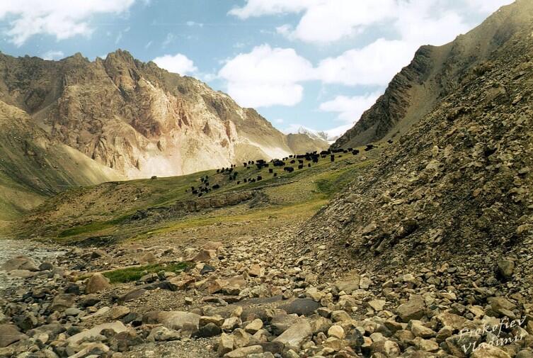 По сравнению с Высоким Алаем и даже Памиром здесь меньше скал и камней и нет таких «ломоногих» морен, как на ледниках Памира. Все это придает весьма определенное своеобразие и очарование этому району.