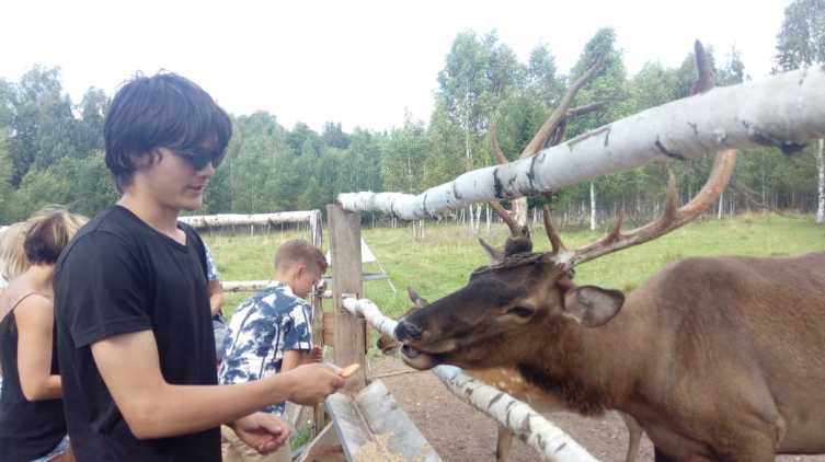 Витя — олень с характером. Его нужно постоянно кормить, иначе он станет бодаться с конкурентами. Мы с другими участниками экскурсии договорились по очереди дежурить рядом с ним, подпитывая его эго морковью или яблоками. В конце концов, экскурсовод насыпала в кормушку кукурузу, и необходимость дежурства отпала.