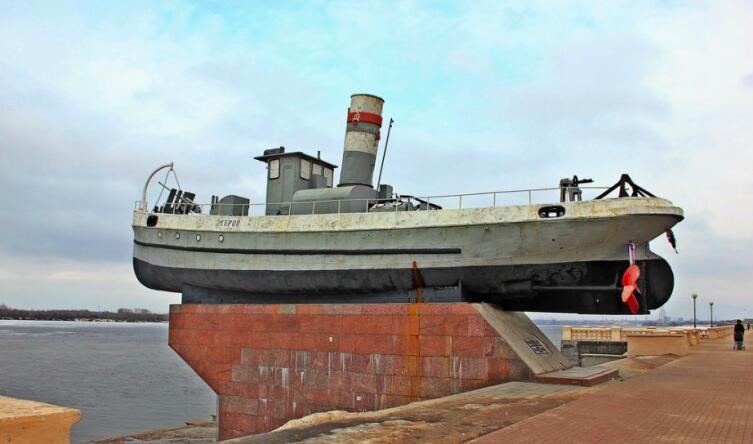 В описании города нельзя не упомянуть и оригинально устроенную набережную. Сразу привлекает внимание катер под названием «Герой», участвовавший в Гражданской войне, а позднее в Великой Отечественной — в боях за Сталинград. После войны он курсировал по Волге в пропагандистских целях. Так и оказался в Нижнем Новгороде. Теперь катер «Герой» на заслуженном отдыхе. Его водрузили на постамент у самого края набережной, кормой на сушу, а носом в сторону реки. Со стороны кажется, что он вот-вот бросится в воду для выполнения новых задач.
