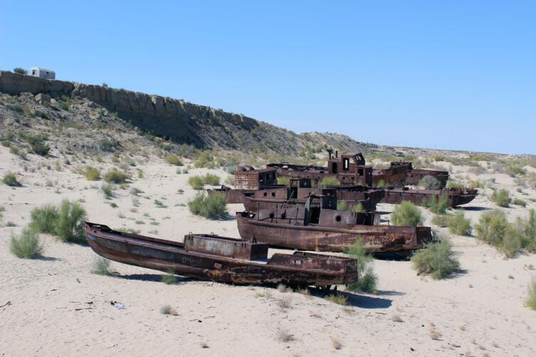 Сейчас от Муйнака до остатка моря — 88 км абсолютно безжизненной пустыни. Как памятники человеческой глупости возле Муйнака остались проржавевшие траулеры, частично уже засыпанные песком. И рядом с ними — отдыхающие от жары верблюды. Экзотика для туристов, которые везут сюда с собой в пластиковых бутылях питьевую воду, так как здешнюю воду пить из-за большой солености приезжему человеку почти невозможно. Но местное население пьет — ведь другой воды нет.
