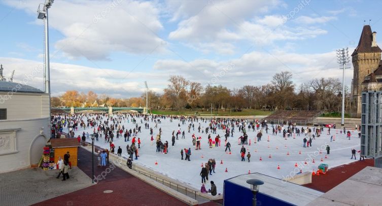 Столица Венгрии может похвастаться многими интересными достопримечательностями, но есть одна исключительно зимняя: когда озеро в городском парке Будапешта замерзает, оно превращается в гигантский ледовый каток площадью 12 000 квадратных метров.