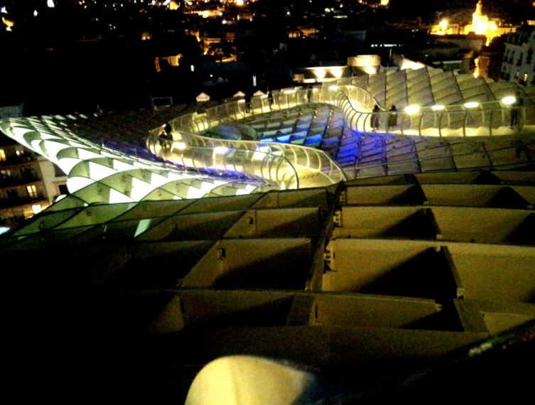 Кроме того, я выбрала популярную испанскую сеть апартаментов, которую очень хвалили в Интернете — Singular Apartments, в Севильи это были Singular Castellar и Singular Pilatos. Я сначала забронировала первые, но девушки в офисе Singular не смогли найти мою бронь и предложили Pilatos. Это было в десяти минутах ходьбы от их офиса, находящегося на площади Plaza de la Encarnación, так что прежде, чем нырнуть в потрясающую красоту средневековых замков и дворцов, мы уткнулись носом в огромную современную конструкцию — «Метрополь Парасоль», а попросту — Грибы.