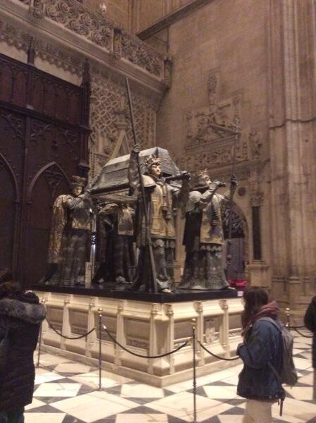 Описывать красоту собора не буду, это такое же неблагодарное дело, как описывать парижский Нотр Дам или Sagrada Familia в Барселоне. Скажу только, что в Catedral de Santa María de la Sede в Севилье — самый большой готический собор в Европе. В нем же покоятся останки Кристофора Колумба, хотя по разным версиям таких мест в мире как минимум три. История о захоронениях знаменитого мореплавателя интригующе запутанна, так как прах первооткрывателя перевозили в разные города и страны на протяжении трехсот лет. Но подлинность захоронения Колумба в Кафедральном соборе Севильи вызывает у исследователей и биографов больше доверия.