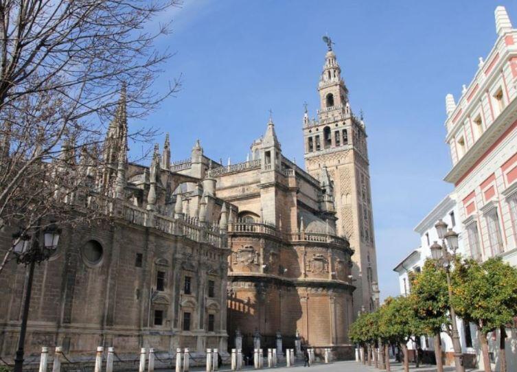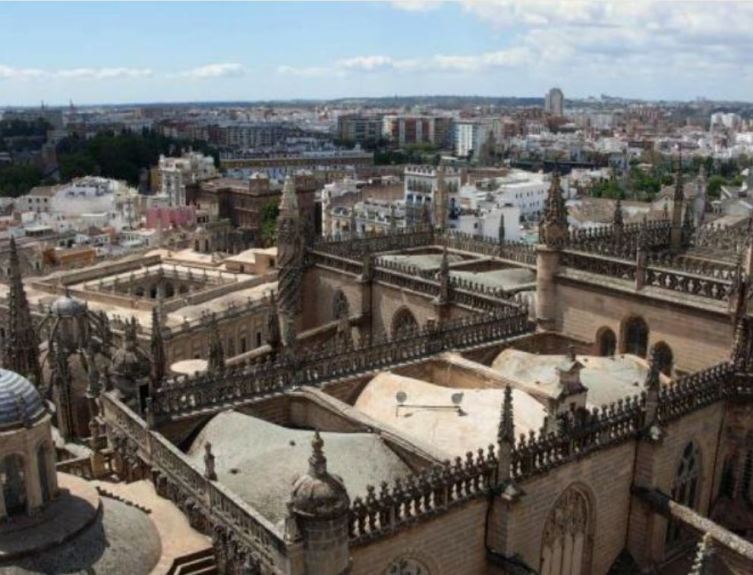 Над Кафедральным собором возвышается башня Хиральда (Giralda означает «флюгер»), на которую надо еще умудриться подняться. Правда, к счастью, подъем идет по широкому каменному пандусу, а не по ступеням. В свое время башня, построенная в виде минарета, служила Большой мечетью Севильи. Пандус был продуман так, чтобы на нем могли разъехаться два всадника — по некоторым сведениям муэдзин для призыва мусульман к молитве въезжал на минарет верхом на ослике. С высоты башни (почти 100 метров) виден весь город в его разных ракурсах.