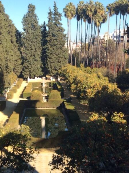 Вокруг летнего дворца раскинулись зеленые в любое время года сады с благоухающими розами, лимонными и апельсиновыми деревьями, вокруг фонтанчики, ручейки, мраморные скамейки (жаль, в январе нельзя было насладиться очарованием сада, сидя даже на солнышке — от мрамора веяло холодом). А в лабиринте из высоких кустов мирта можно по-настоящему заблудиться. В 1987 года Алькасар Севильи был внесен в список Всемирного наследия ЮНЕСКО.