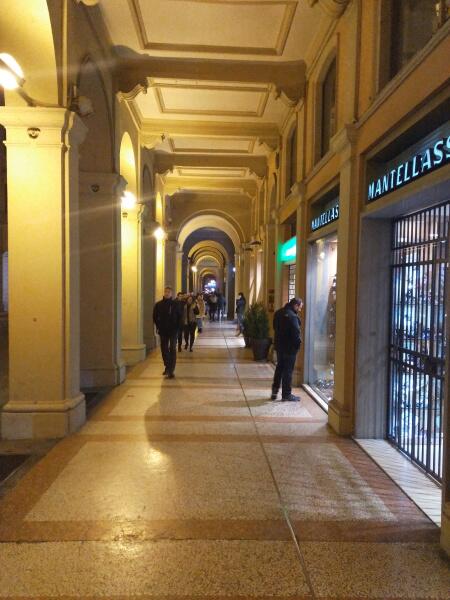 Другая «фича» Болоньи не раздражает, а приятно удивляет: почти все улицы старого города перекрыты портиками. Верхние этажи домов, опираясь на колонны, нависают над тротуарами, образуя надежное и красивое прикрытие от дождя зимой и от жарких солнечных лучей летом. Так что гулять по Болонье приятно в любое время года. Так же, как и в любое время дня.