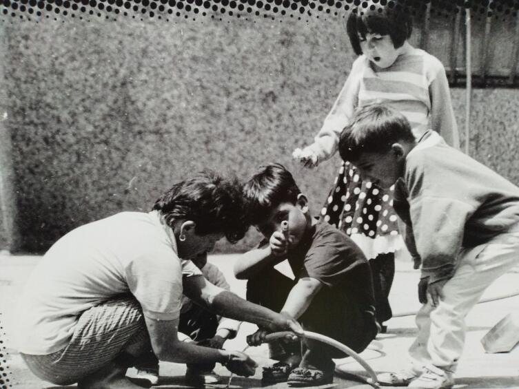Вот мальчик, совсем юный, лет 8, целится из пистолета в фотографа. Дети играют с гранатой. Женщина бежит с ребенком на руках, а под ней взрывается снаряд. Горят дома, падают крыши под ударами пуль и мин.