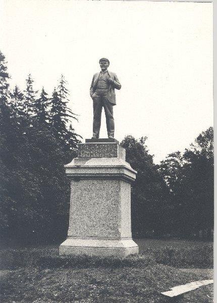 Как вспоминают старожилы Петергофа, вот такой Ильич стоял в Новом Петергофе до 1960-х годов. От него сейчас остался небольшой пригорок на газоне, находящемся на территории ГМЗ перед Фрейлинскими корпусами. А до этого после войны, якобы, на этом постаменте стоял памятник отцу всех народов Сталину.
