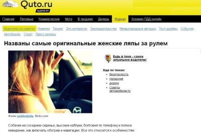 Уважаемые комментаторы! Прочитайте заново название статьи. Прочитали? Там НЕТ утверждения на тот счет, что женщина за рулем обязательно нарушает ПДД! В статье лишь о том, почему женщина за рулем МОЖЕТ оказаться опаснее мужчины. С таким же успехом пишется статья на тему "Почему мужчина за рулем МОЖЕТ оказаться опаснее женщины?" Логично? За что же вы ставите статье "колы" и "двойки"? Только за то, что статья не совпадает с Вашим личным мнением? Но это же не значит, что я не имею права высказать здесь свое личное мнение. Разве не так? Или мнение, не совпадающее с Вашим мнением - плохое мнение для всех?